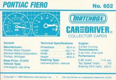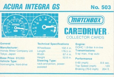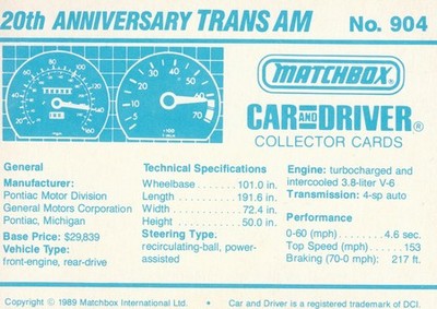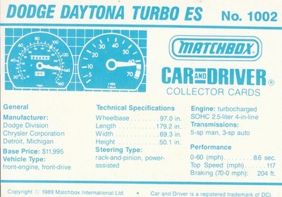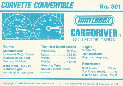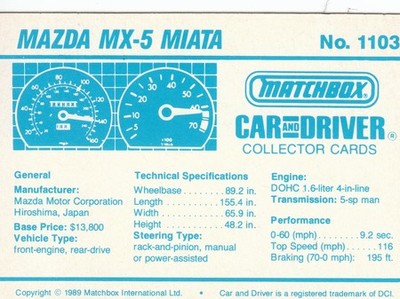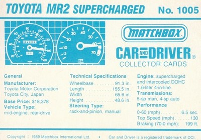 Matchbox Car and Driver Collector Cards
