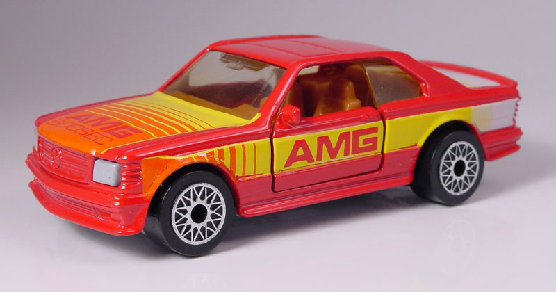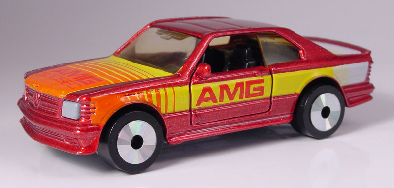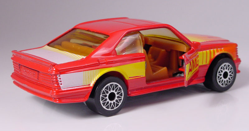 MB135 Mercedes 500 SEC All the goodies - opening doors, working suspension, metal base. Plus, this baby has the new Superfast wheels. With it's heavy all-metal construction and low rolling resistance, it's a real Hot Wheels eater. This ranks as one of my all-time favorite Matchboxes.