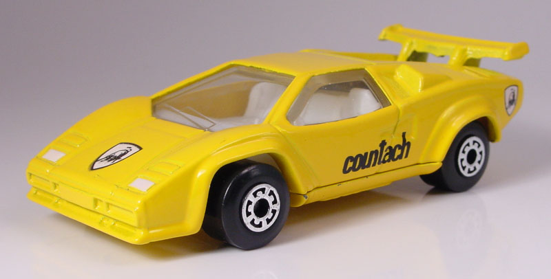 MB154 Lamborghini Countach They ruined this model during the Tyco tears. The original versions had a metal base, and wheels that fit properly into the wheel wells.
