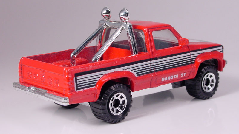 MB186 Dodge Dakota I'm glad to see that Matchbox is starting to make pickups with normal size wheels again. My favorite thing about this model is the "Dodge" embossed on the tailgate.